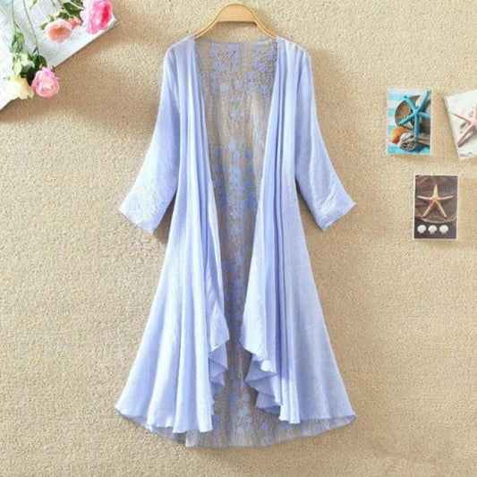 Women's Mid-Length Cardigan – Breathable Fabric – Lace Back – Loose Fit – 3/4 Sleeves