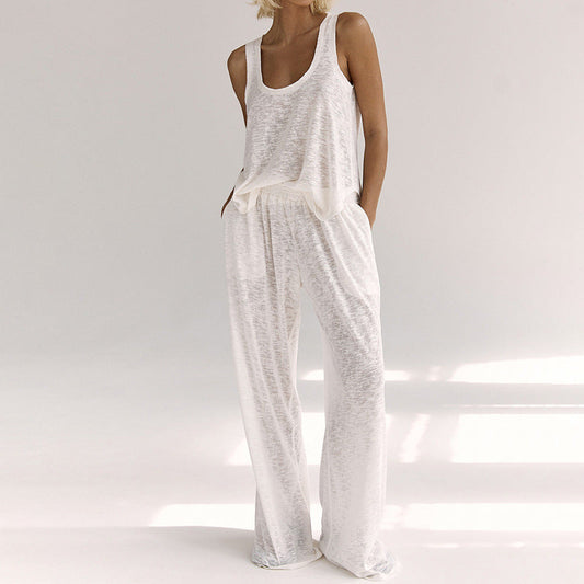 Casual women's set – Sleeveless wrap top – Wide flowy soft cotton pants