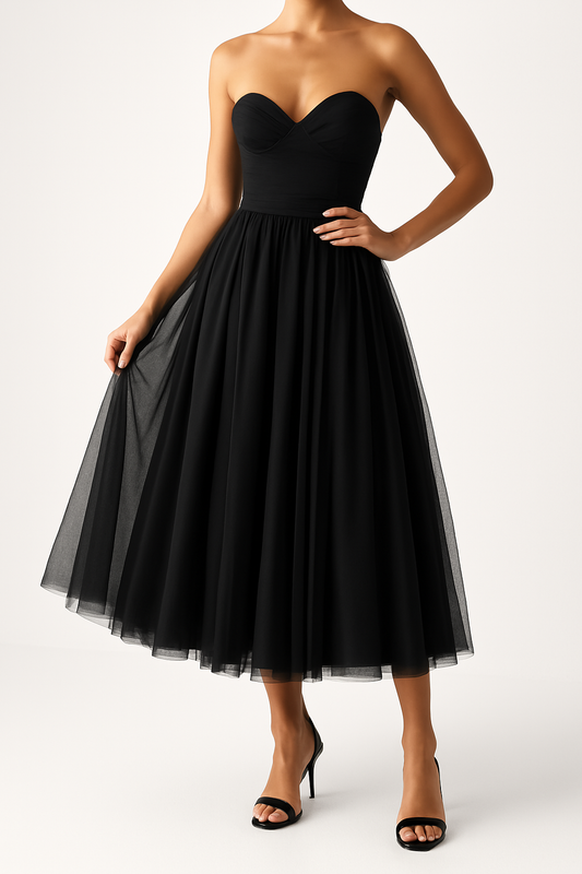 Women's strapless dress – Tulle – Fitted bustier – Midi flared cut