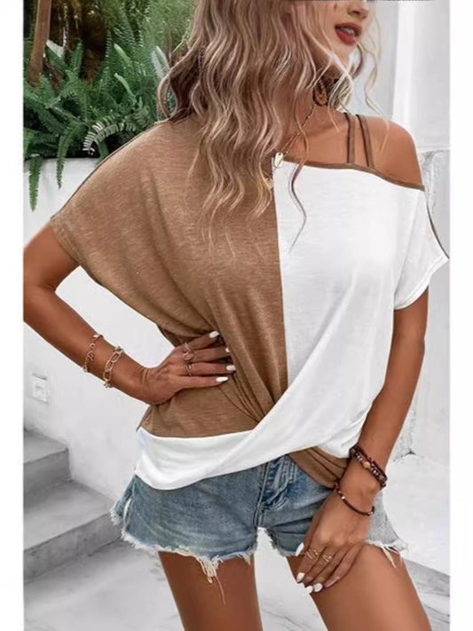T-shirt woman – Relaxed fit – Off-the-shoulder – Knot detail – Colorblock