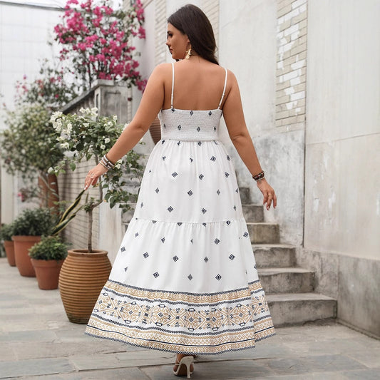 Long women's dress – Halter neck – Floral print – Flowing ruffled skirt