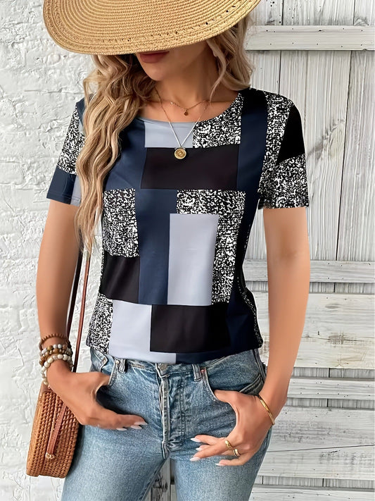 Women's T-shirt – Regular fit – Soft cotton – Short sleeves – Geometric print
