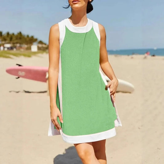 Women's mini dress – Relaxed fit – Sport collar – Sleeveless – Side pockets