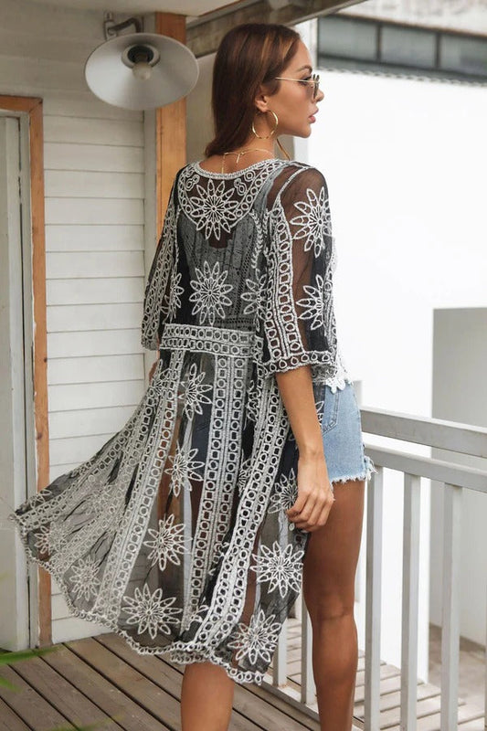 Long women's dress – Straight cut – Short sleeves – Elegant sheer tulle