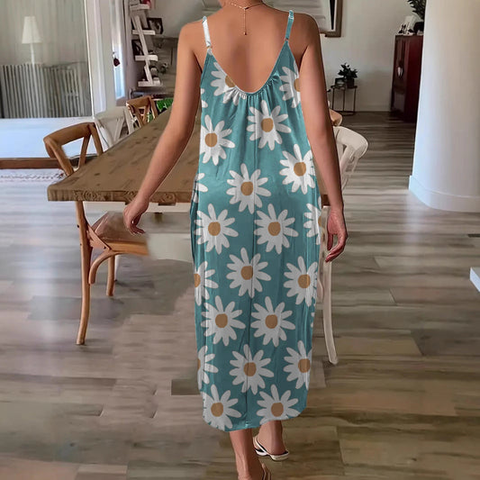 Women's long dress – Fluid cut – Thin straps – Floral print – Breathable fabric