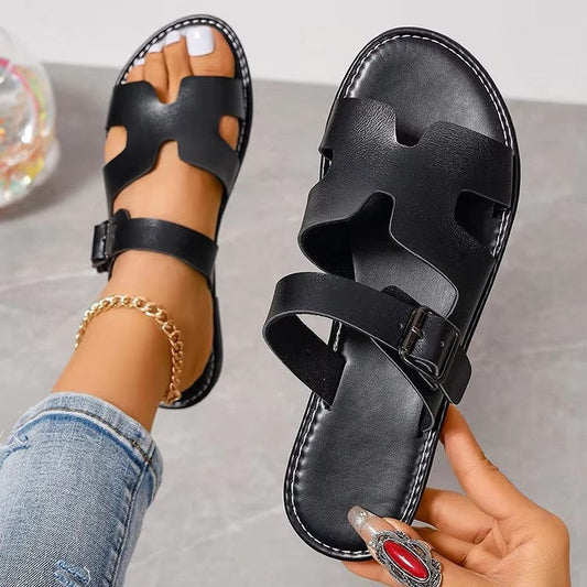 Flat women's sandals – Double strap – Open toe – Comfortable adjustable buckles