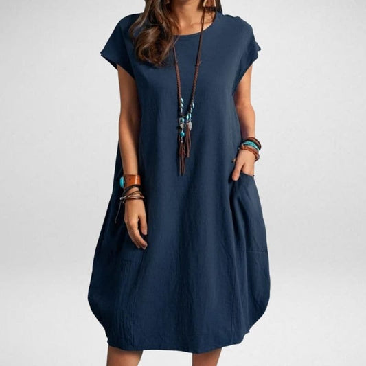 Women's long dress – Relaxed fit – Breathable fabric – Short sleeves with pockets