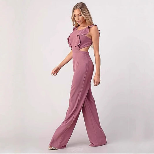 Women's Jumpsuit – High Waist – Sleeveless – Wide Leg – Ruffles – Waist Cutout