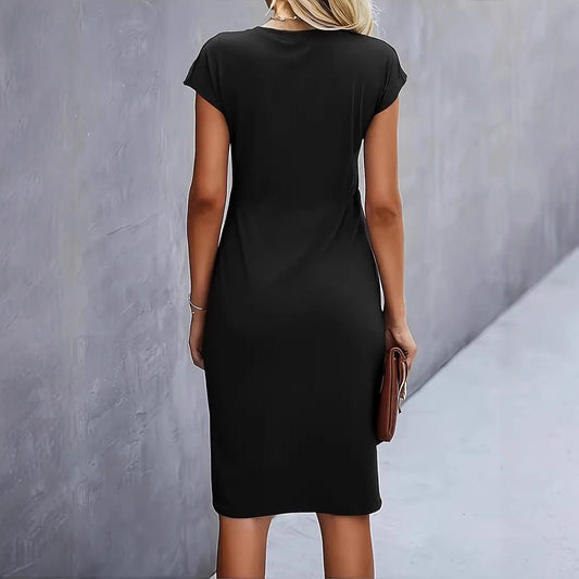 Women's bodycon dress – Fitted cut – Short sleeves – Round neck – Side knot