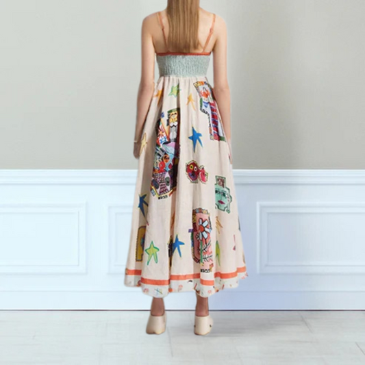 Women's long dress – Flared cut – Thin straps – Square neckline – Lightweight fabric