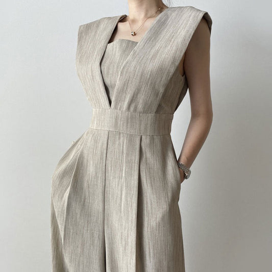 Women's Jumpsuit – Sleeveless – V-Neck – Elastic Waist – Flowing Cut