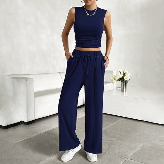 Women's 2-Piece Set – Sleeveless Cropped Top – Wide-Leg Pants with Elastic Waist