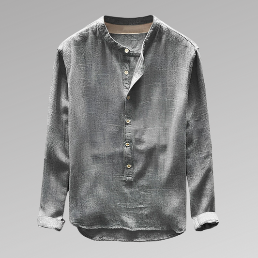 Men's long-sleeve shirt – Relaxed fit – Mao collar – Breathable fabric