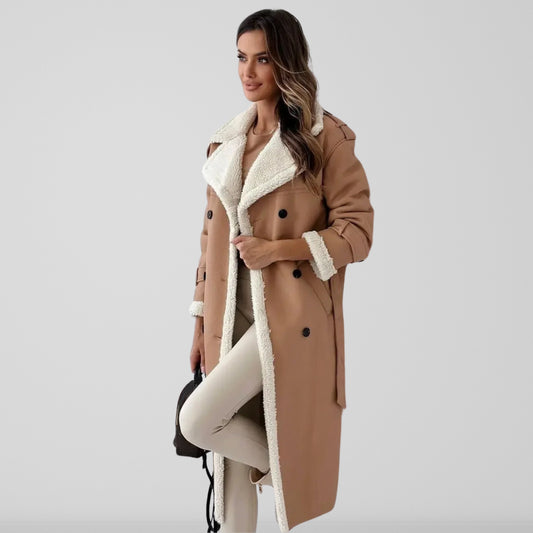 Manteau femme long – Coupe oversize – Doublure effet mouton – Ceinturé croisé