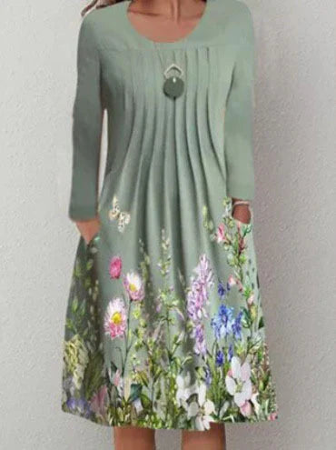 Women's casual dress – Flared cut – Floral – Long sleeves – Cotton