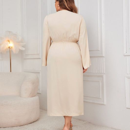 Women's long dress – Soft knit – Fluid fit – V-neck – Tie waist – Side slit
