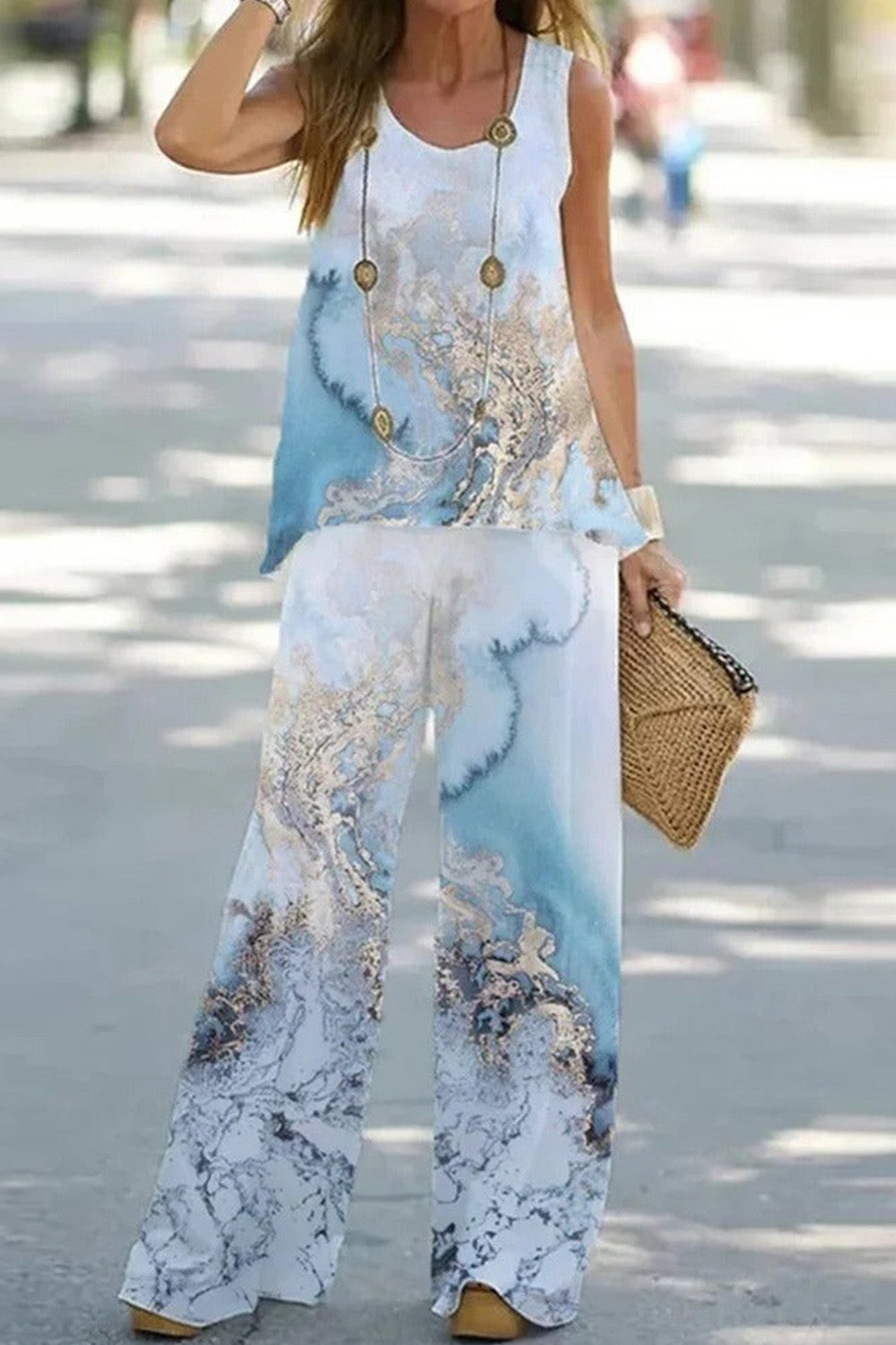 - Design : Haut sans manches, pantalon large, coupe décontractée