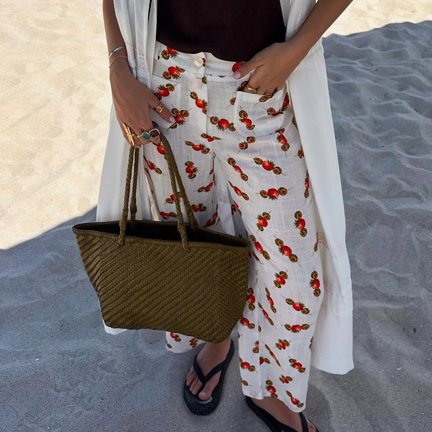 Pantalon femme décontracté – Coupe droite – Imprimé audacieux – Tissu respirant