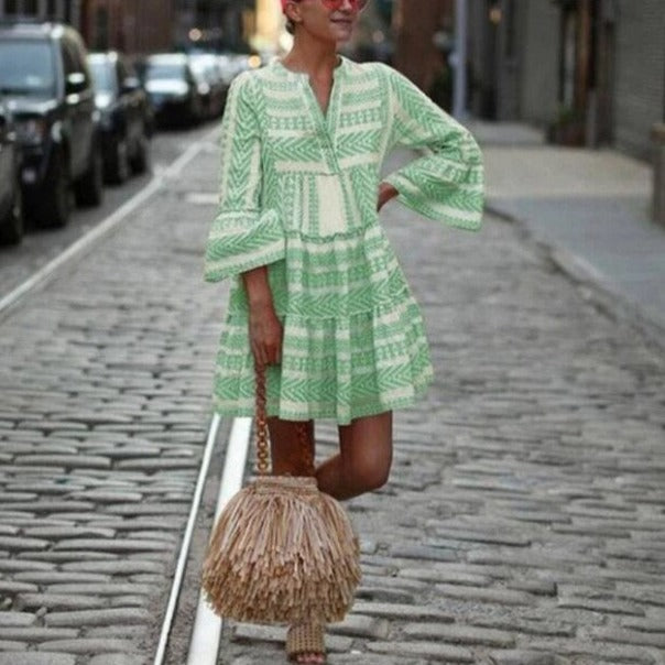 Robe bohème femme – Coupe évasée – Tissu respirant – Manches évasées – Col en V