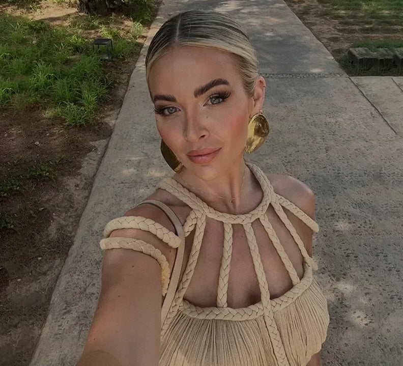Robe Longue Femme – Coupe Ample – Col Halter – Détail Tressé – Fibres Naturelles