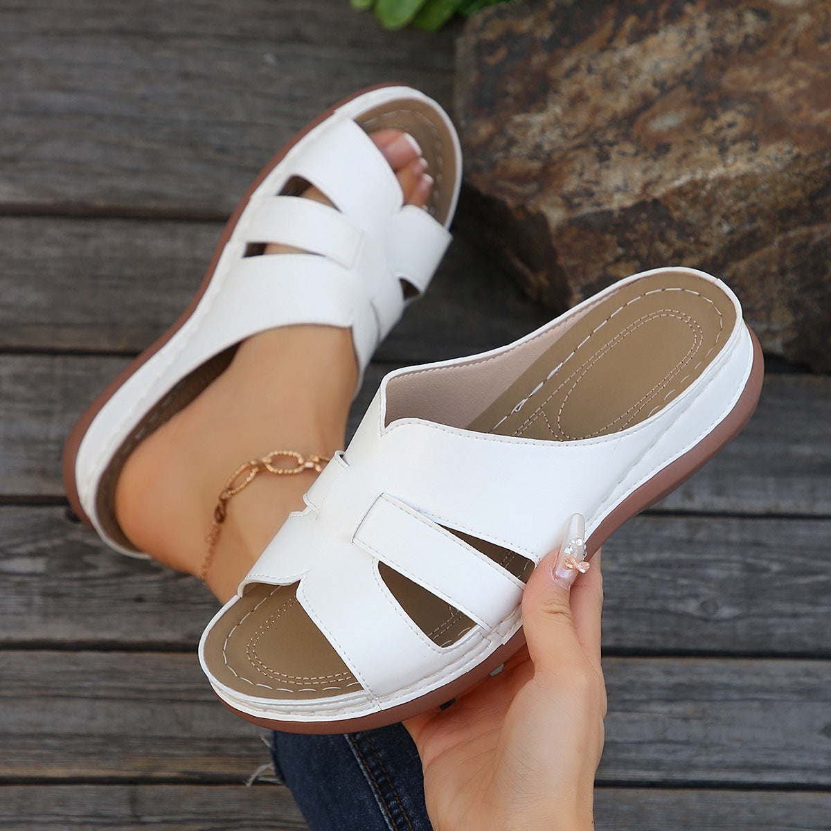 - Design : Talon compensé, bout ouvert, découpes élégantes, facile à enfiler