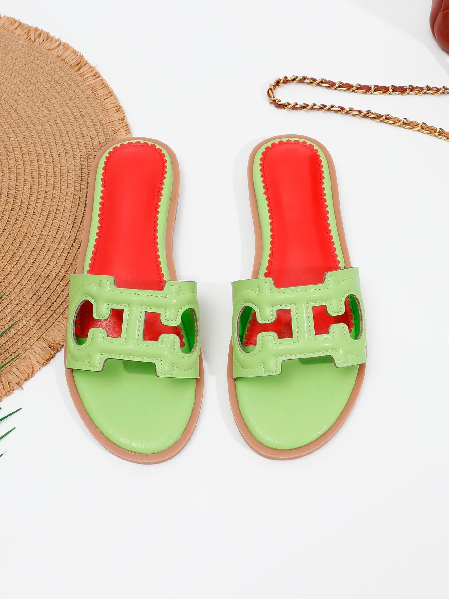 Sandales plates femme – Bout ouvert – Bride ajourée – Enfilage facile – Style décontracté