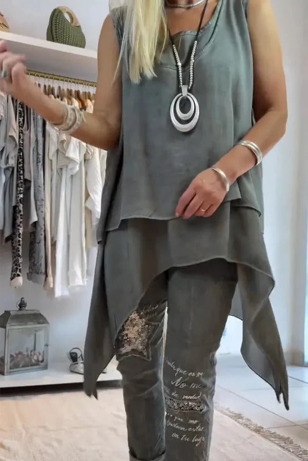 Découvrez le haut long pour femme Balerria - Coupe décontractée, sans manches, avec ourlet asymétrique. Sa légèreté offre un style et un confort tout au long de la journée, idéal pour un look moderne et polyvalent. Indispensable pour vos tenues d'été. Soyez à la mode sans effort !